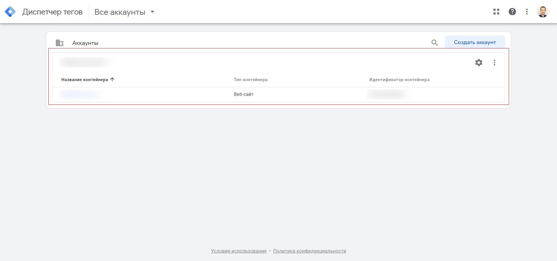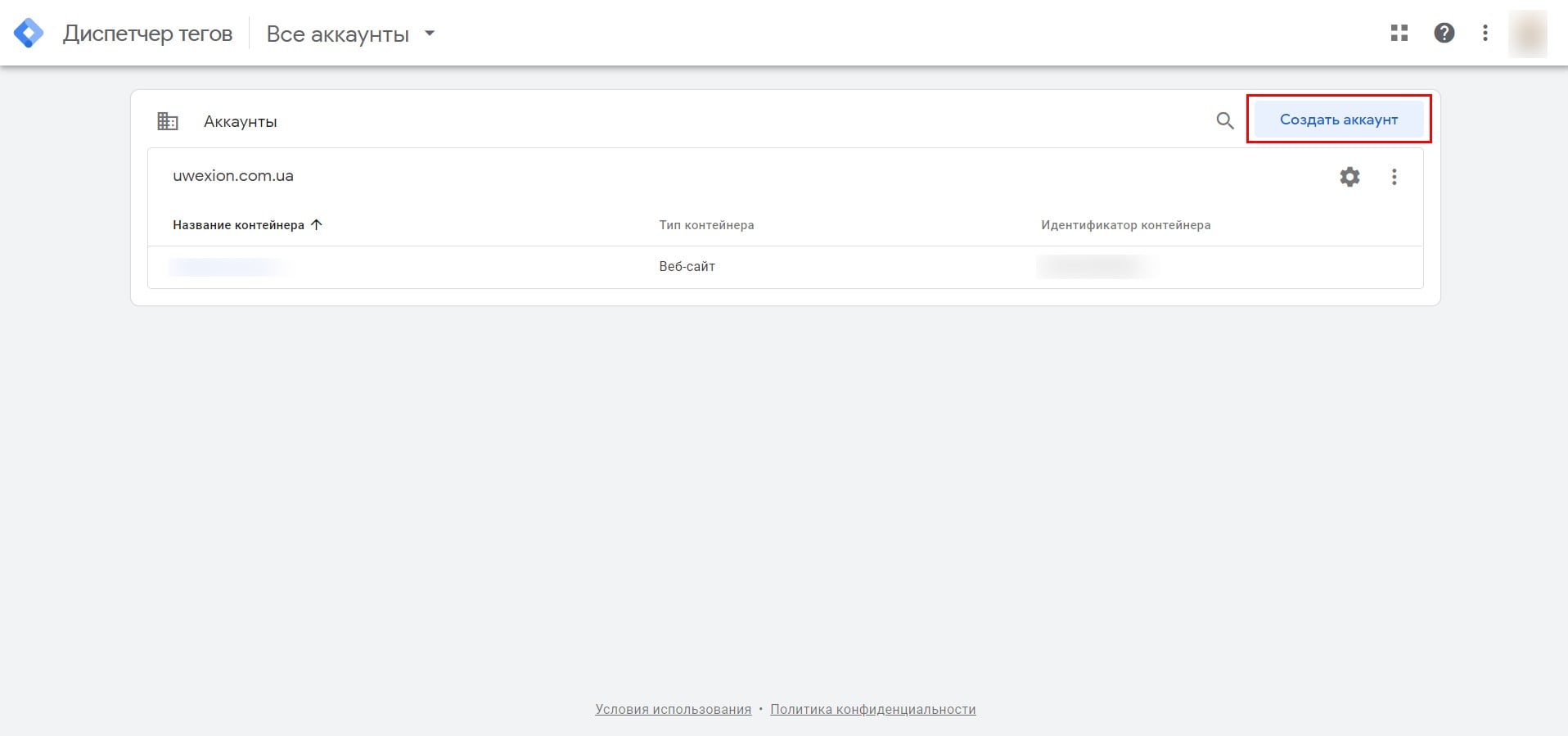 - Переходимо в створений обліковий запис GTM, який з'явиться в загальному списку