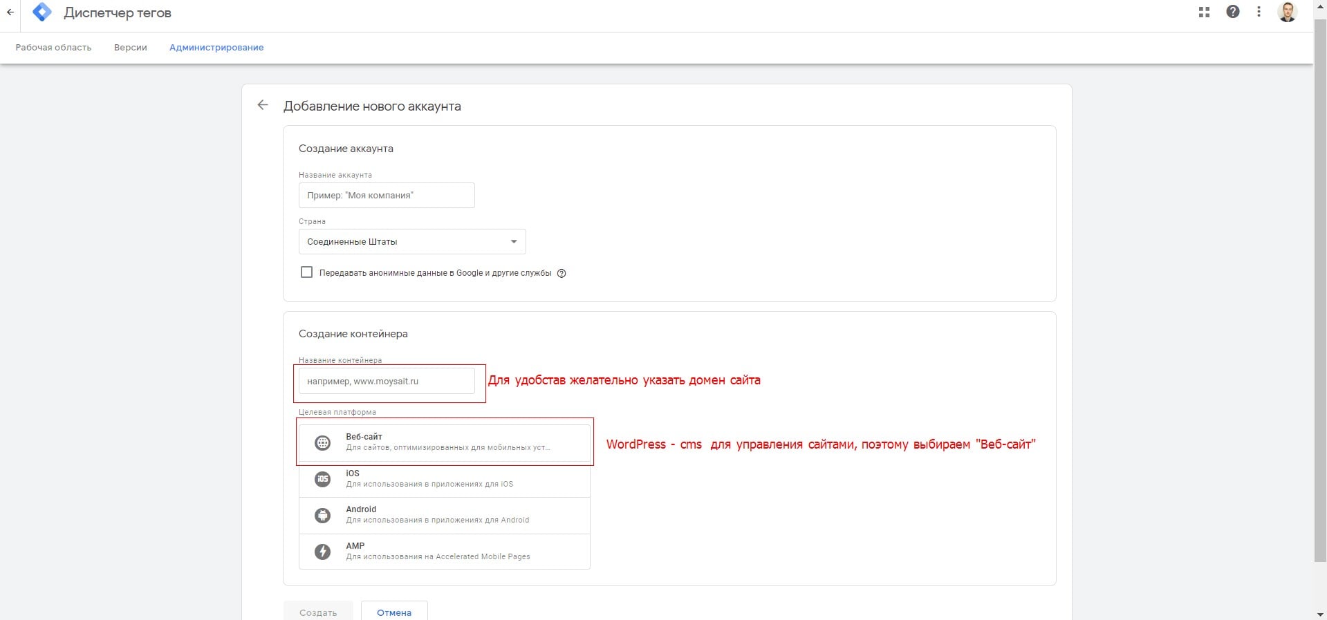 - Регистрируемся / входим на сайт https://www.google.com/intl/ru/tagmanager/